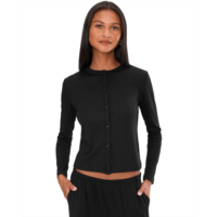 Womens Barefoot Dreams Pointelle Rib Cardi with Scallop Trim