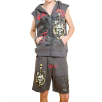 Ed Hardy panther skull fleece zip up cut off hoodie in charcoal