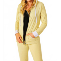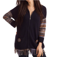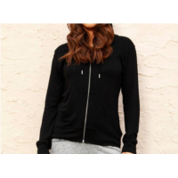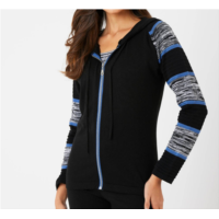French kyss womens stripe sleeve zip up hoodie in black denim