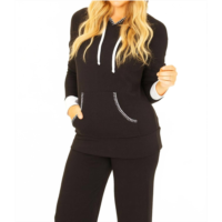 French kyss detail hoodie with pocket in black/white