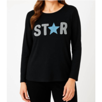 French kyss star crewneck top in black/wind