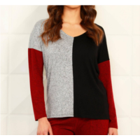 French kyss color block open v-neck top in black/wine
