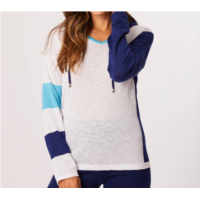 French kyss drawstring cowl neck top in slate/multi