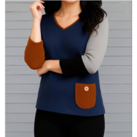 French kyss melange 2 pockets v-neck top in lilac