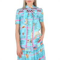 Moschino all-over diner menu print short sleeve silk blouse