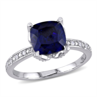 Mimi & Max cushion-cut created blue sapphire and diamond ring 10k whi...