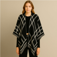 TRUEDAMES check pattern print ruana poncho