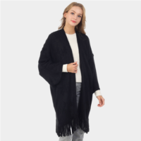 TRUEDAMES clean edge wide sleeves solid knit poncho