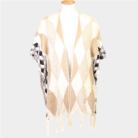 TRUEDAMES diamond pattern tassel poncho