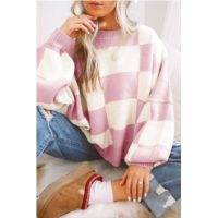 TRUEDAMES pink checkered bishop sleeve sweater