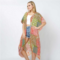 TRUEDAMES tropical printed half sleeves cover up kimono poncho