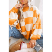 TRUEDAMES orange checkered bishop sleeve sweater