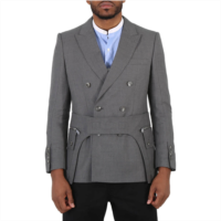 Burberry charcoal grey english fit wool tailored jacket with cargo be...