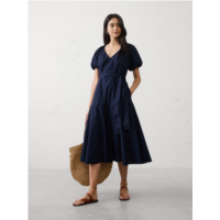 bananarepublic Poplin Gathered-Neck Midi Dress