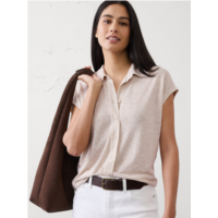 bananarepublic Linen-Blend Collared Top