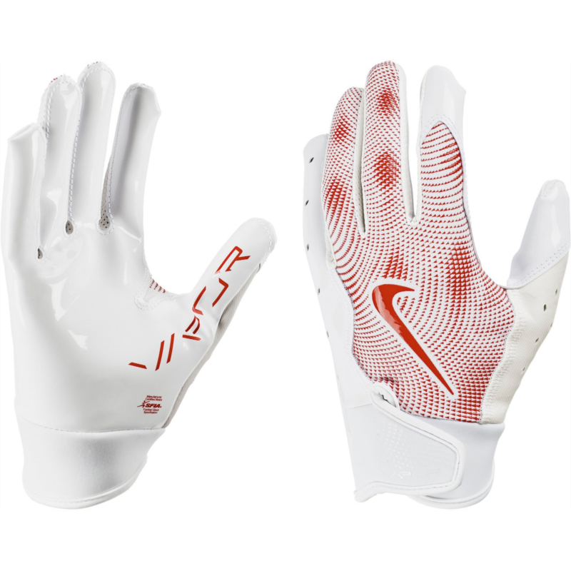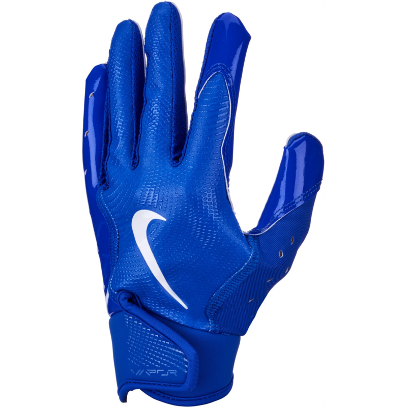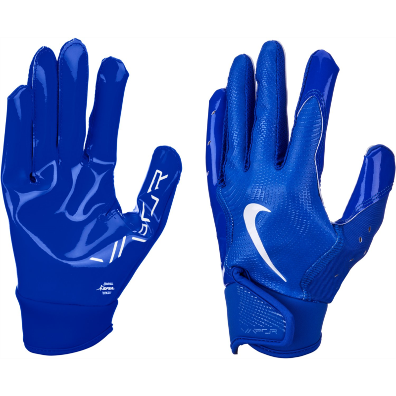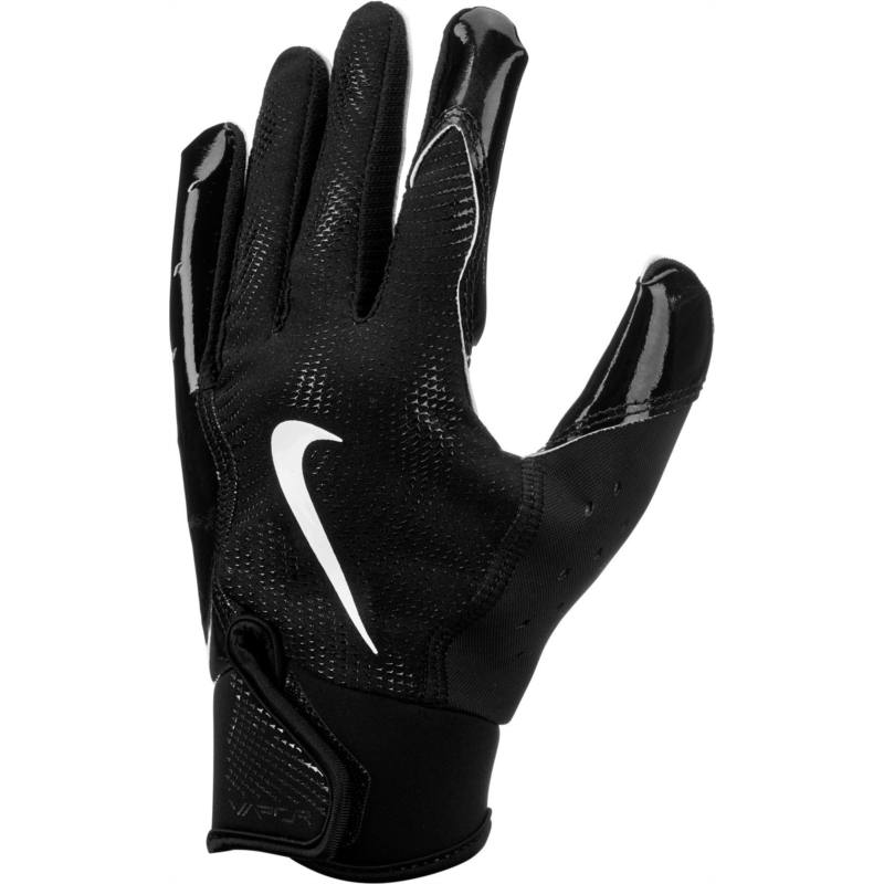 Step onto the field with confidence when you wear the Nike Youth Vapor Jet 8.0 Football Gloves. The backs of the hand provide lightweight, breathable feel and flexibility, while the Magnigrip+ palm helps enhance grip for secure catches. Finger perforations offer breathability, and the adjustable elastic wrist straps deliver a secure, distraction-free fit. Back of hand is made from a lightweight, breathable, flexible blend of 64% polyester, 16% silicone, 8% nylon, 7% spandex and 5% PU leather