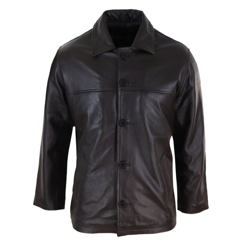 * Mens Real Leather Vintage Button Box Jacket Mid Length* Button Box Style With Side & Internal Pockets* Premium Hide Buffalo Leather, Regualr Fit Great For Everyday Wear* Mid Length, Classic Box Style Button Down Jacket, Timeless Perfect Casual or Smart Casual JacketMaterial - Outer - 100% Leather; Lining - 100% Polyester More products from the category coats for men