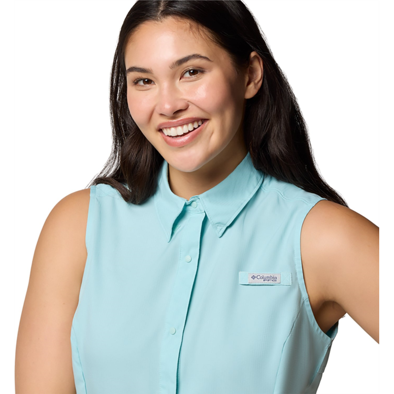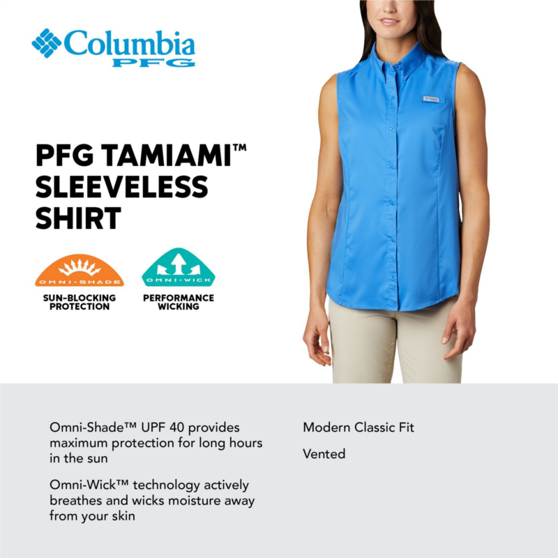 Enjoy the cool, casual style of the Columbia Sportswear Women''s PFG Tamiami Sleeveless Shirt. This shirt is made of 100% polyester for a light and comfortable feel and features Omni-Shadea?¢ fabric technology that protects you from harmful UVA and UVB rays and Omni-Wicka?¢ fabric technology to wick moisture and help keep you dry. Sleeveless. 100% polyester for a light and comfortable feel