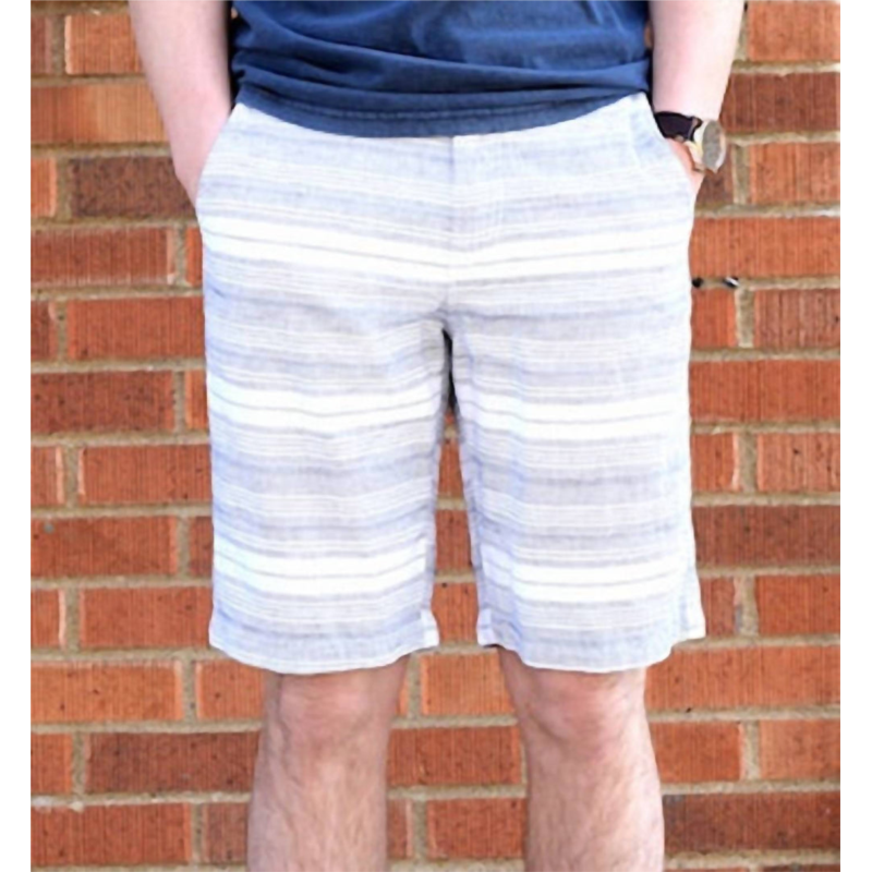Elevate your summer wardrobe with the Men''s Striped Shorts from Flags & Anthem. Expertly crafted from a 55% Linen and 45% Cotton blend, these shorts promise comfort and style in a classic white and navy stripe pattern. Designed with functional pockets, they feature a convenient button closure. Care is simple with machine wash cold and tumble dry low, ensuring easy maintenance.