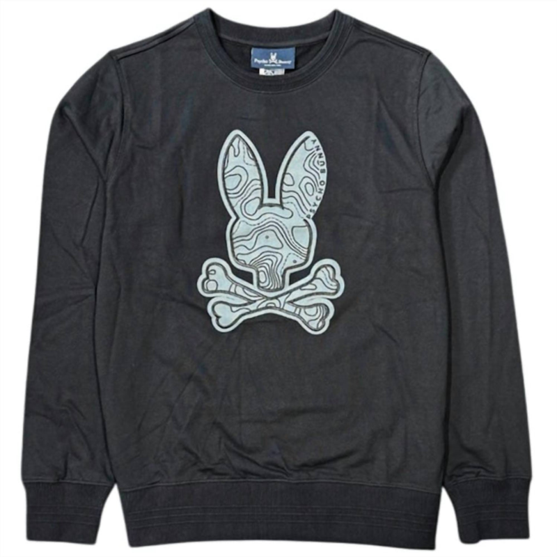 Experience ultimate comfort and style with the Men''s Dixon Logo Sweatshirt by Psycho Bunny, crafted entirely from the softest 100% French terry cotton. This black sweatshirt stands out with its striking Psycho Bunny graphic and features detailed embroidered and chain stitched designs inspired by topographical maps. Designed with long sleeves, a crewneck, and taped seams, it offers a perfect fit with ribbed cuffs, hem, and collar. Closure - Pull-on.