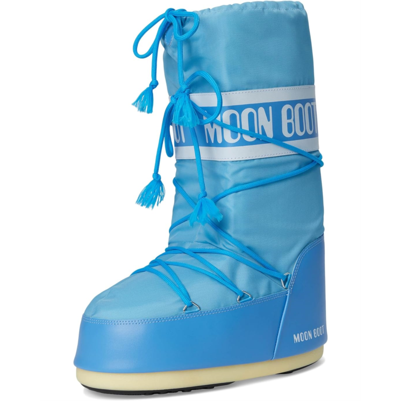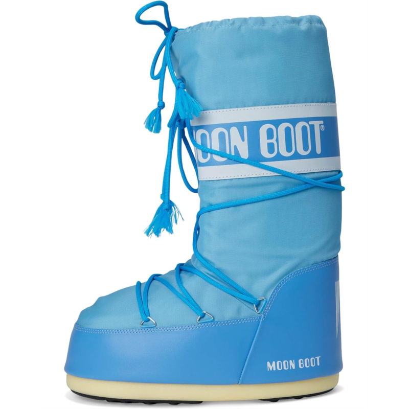 - Iconic design, unmatched warmth in the MOON BOOT Icon Nylon! Elevate your snow style with a durable nylon upper and knee-high design that conquers the cold. Experience the perfect blend of comfort and support with a PU insole and grippy rubber outsole, keeping you steady on icy terrain. The round toe and lace-up closure provide a snug fit, making these snow boots as functional as they are fashionable.