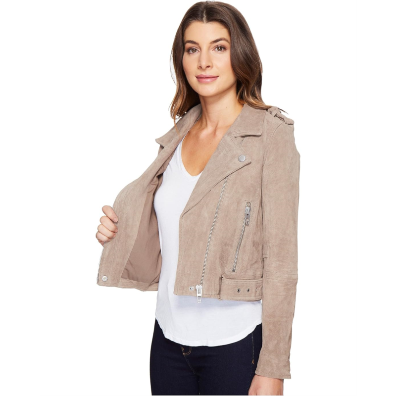 - The [BLANKNYC] Suede Moto Jacket will show off your edgy and polished style with structured seams, nail-head hardware, and an exaggerated belt at the waist.