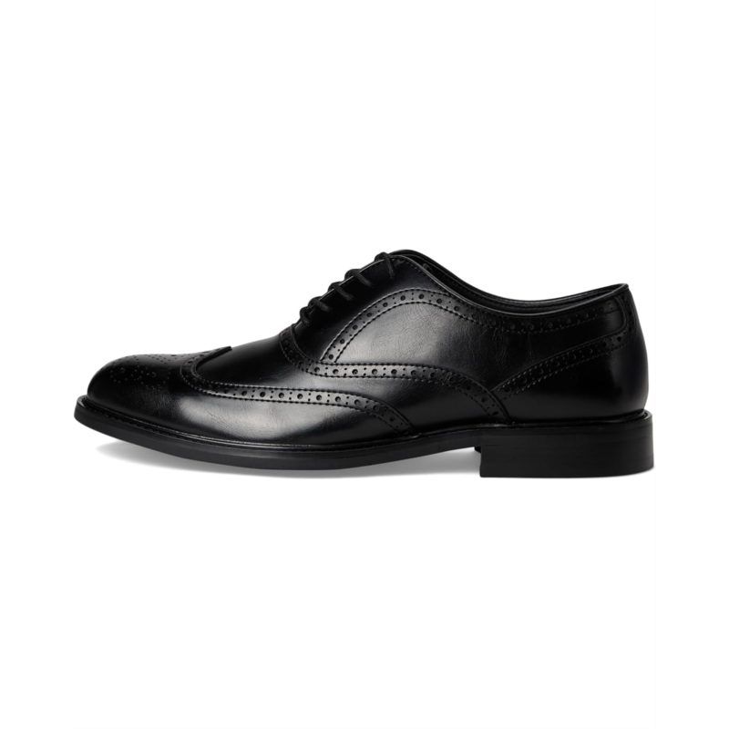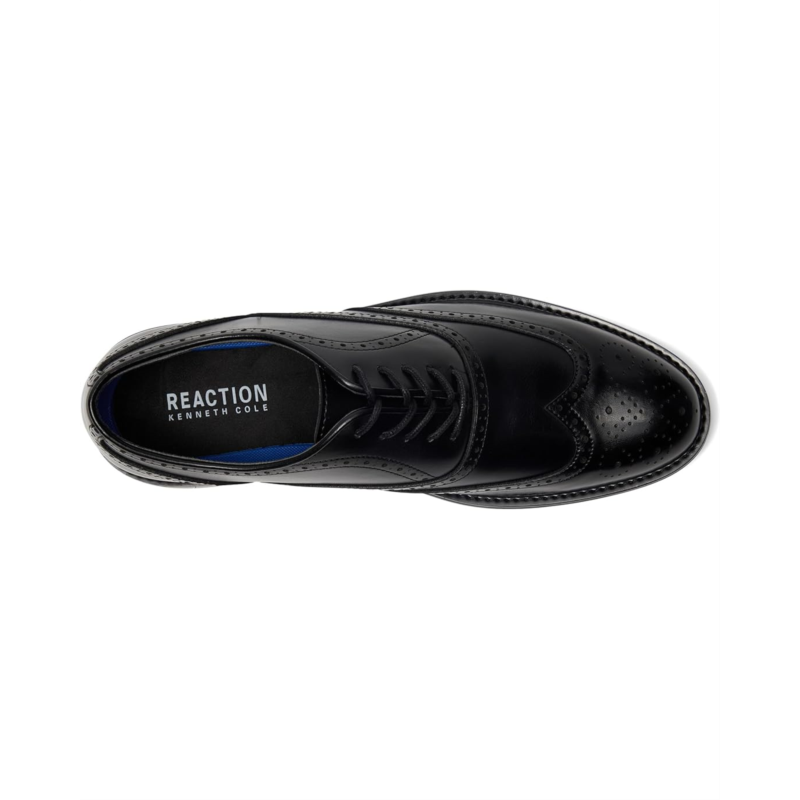 - Kenneth Cole Reaction Lance redefines classic style with fresh, fashion-forward energy. Crafted with a sleek PU upper and detailed with refined brogue perforations and a wingtip design, this lace-up derby-inspired shoe instantly elevates any look. The round toe offers a versatile silhouette that works seamlessly from office meetings to evening outings, while the durable synthetic rubber lining and cushioned rubber insole deliver comfort that lasts all day. Finished with a sturdy rubber outsole for dependable traction, the Lance is built to balance elegance with everyday wearability.