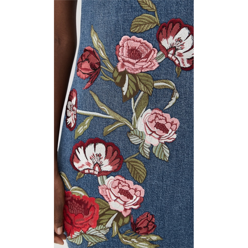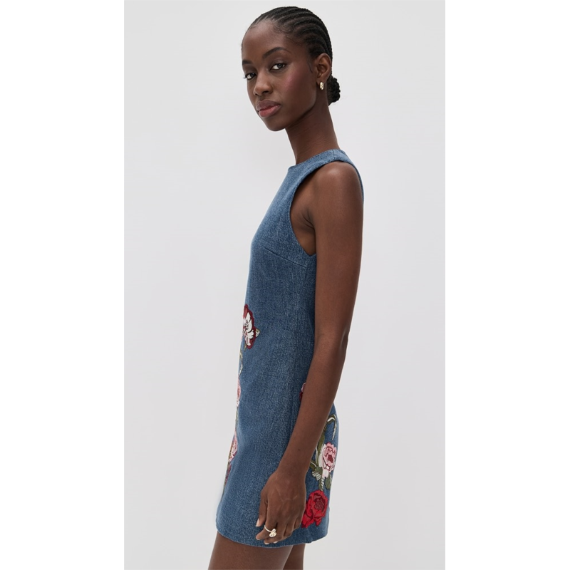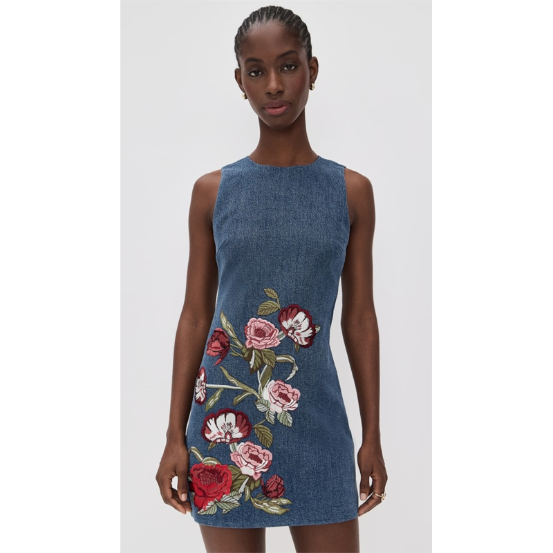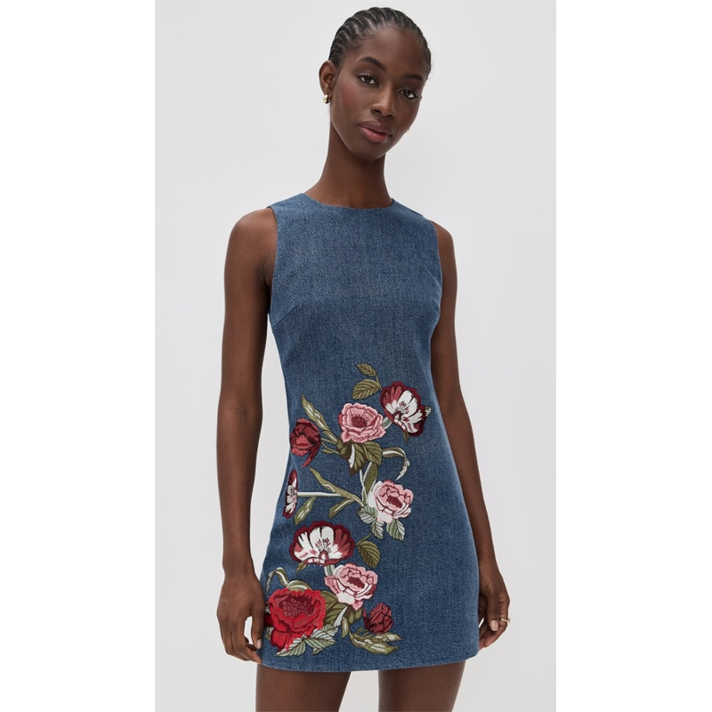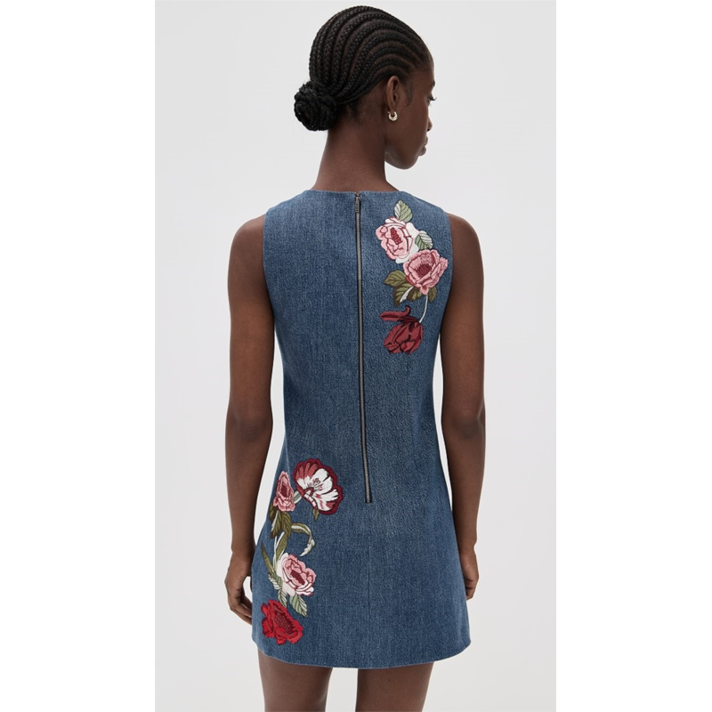 [US] Alice olivia Cade Embroidered Sleeveless Shift Denim Mini Dress