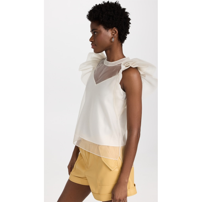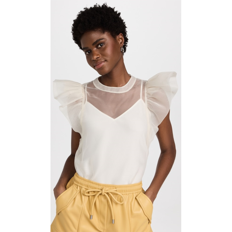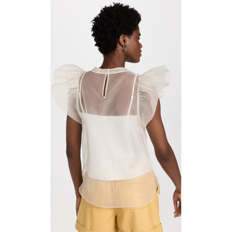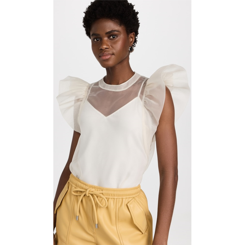 [US] SIMKHAI Corina Organza Ruffle Sleeve Crew Neck Top