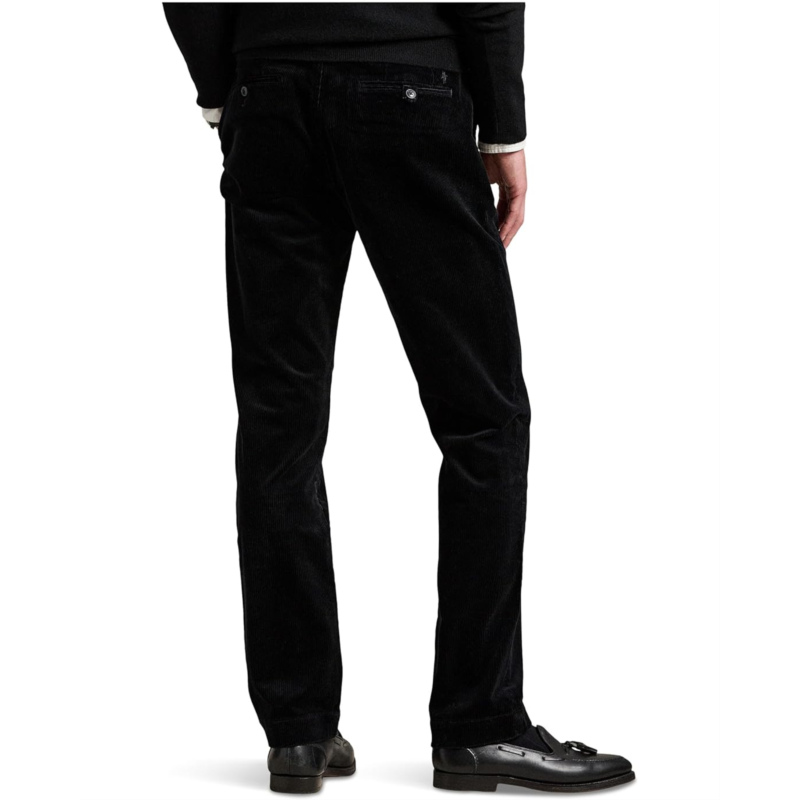 - Made with soft cotton and a hint of stretch, these Polo Ralph Lauren Straight Fit Stretch Corduroy Pants are a modern take on classic corduroy. The straight fit pants feature a mid-rise waist with belt loops, a zip-fly, and a buttoned closure. The two front angled pockets, right hip coin pocket, and two back buttoned pockets add functionality.