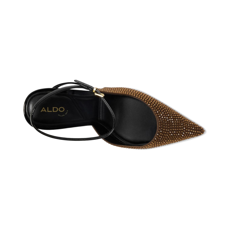 - Slay all day, strut all night in the ALDO Kymmberly. Featuring a pointed toe and chic strappy slingback design, these heels are crafted with a PU upper, lining, insole, and outsole for polished appeal. The slim buckle ankle closure adds a touch of elegance, while the stiletto heel serves serious leg-lengthening vibes. But the real game-changer? ALDOs Pillow Walk padded insoles that deliver dreamy comfort with every step-because style this bold should never hurt.