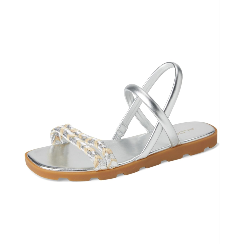 - The ALDO Narine is a flat sandal with a chic metallic finish. Little details, like crisscrossed straps and a subtle treaded outsole, make this footwear extra special.