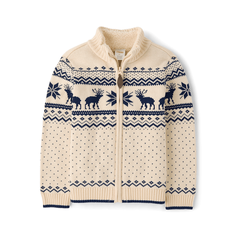 Gymboree Boys Reindeer Fairisle Zip Up Sweater - First Frost - cream