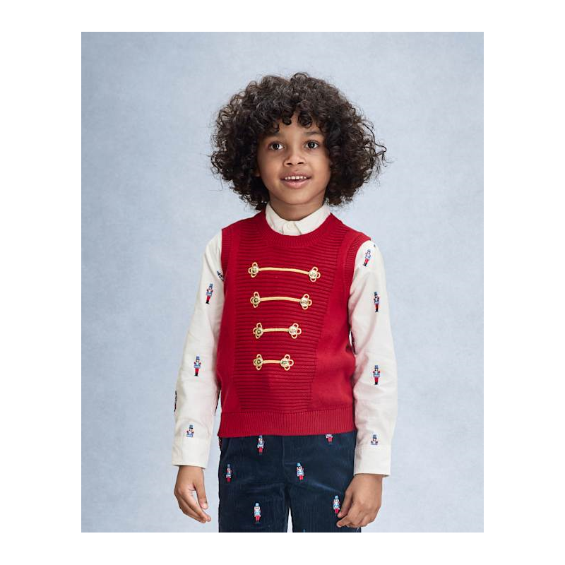 - FEATURES: Button front, schiffli embroidered nutcrackers, fabric finished for added softness & to reduce shrinkage