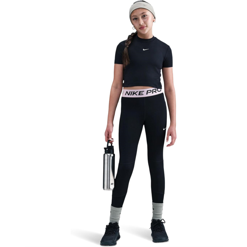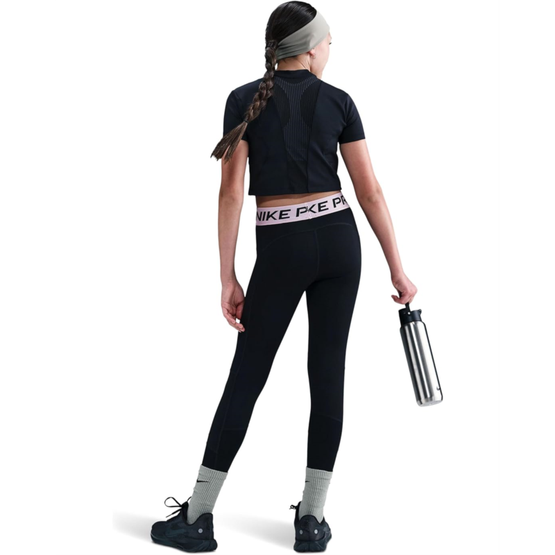 - Power up your moves with style and comfort in the Nike Kids Pro Dri-FIT Leggings. Designed with a fitted silhouette, skinny legs, and a mid-rise cut, these pull-on leggings hug your body for a sleek, stay-put fit that never gets in the way. The elasticized waistband ensures flexible comfort, while Nike Pros signature smooth and stretchy fabric is made to move with you. Thanks to innovative Dri-FIT technology, moisture is pulled away from your skin for quick evaporation, so sweat wont slow you down on the field, in the gym, or at recess.