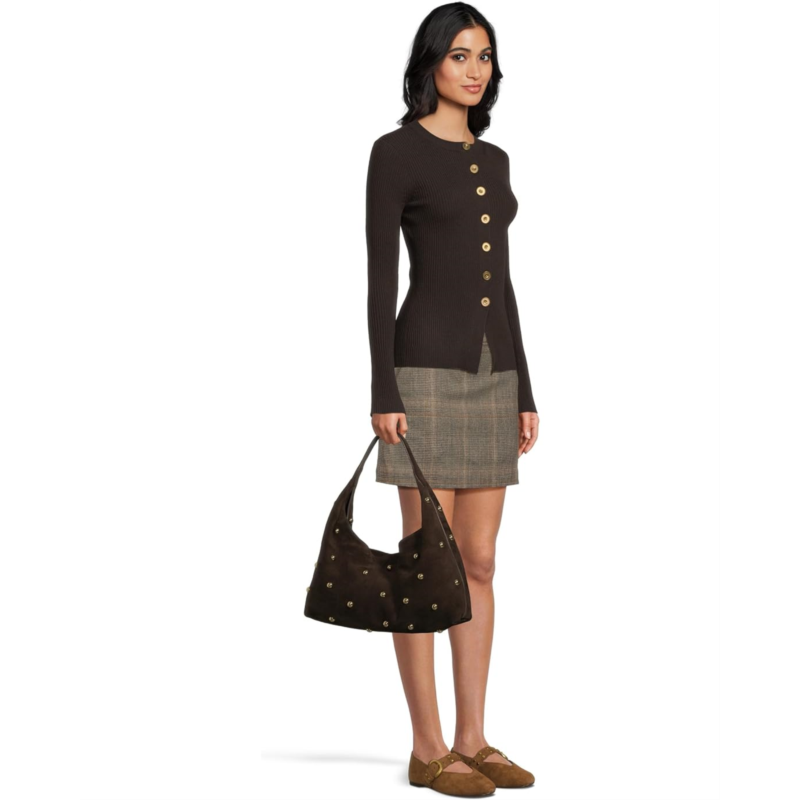 - Embrace laid-back luxury carrying the Madewell Suede Slouchy Shoulder Bag in Stud. Crafted from buttery suede, this spacious shoulder bag offers a relaxed silhouette that effortlessly complements any outfit. Adorned with subtle metallic studs that add a touch of modern edge without overpowering the classic design.