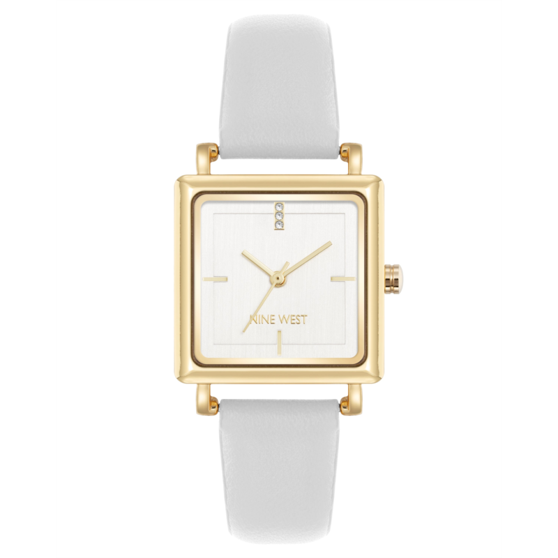 [US] NINEWEST Square Strap Watch with Crystal Accents