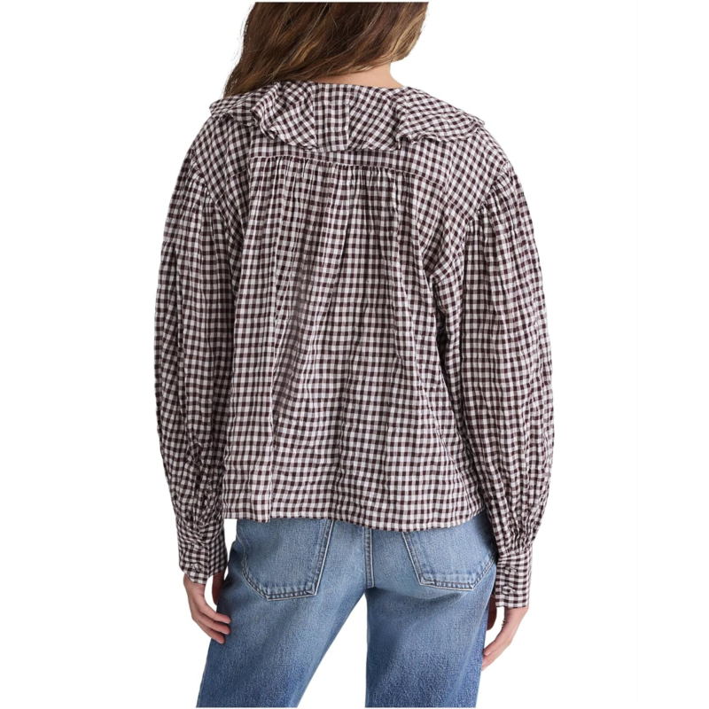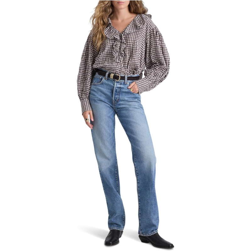 - The Madewell Marciana Top captures modern femininity with a touch of timeless charm. Designed in a regular fit that flatters every frame, this piece exudes relaxed sophistication for any occasion. The graceful V-neckline framed with delicate ruffles adds a soft, romantic flair, while long sleeves with button cuffs create a polished, versatile look you can dress up or down with ease.