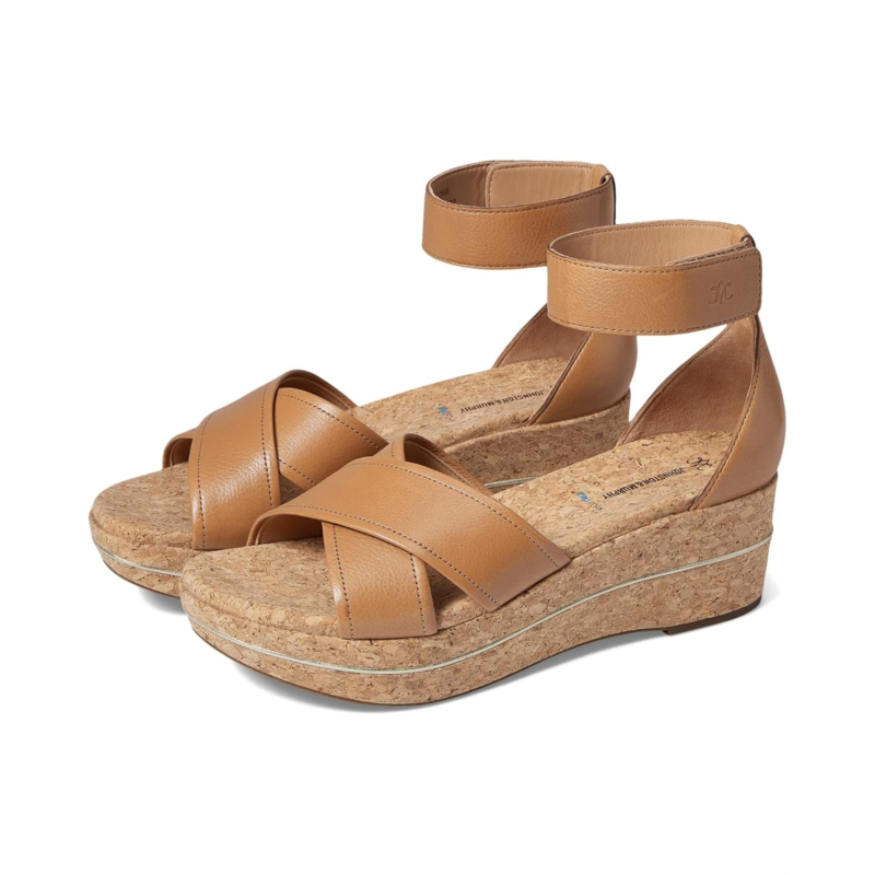Genuine cork-wrapped wedge heel.
