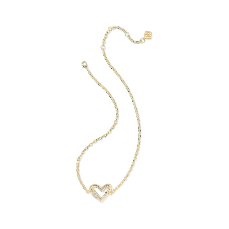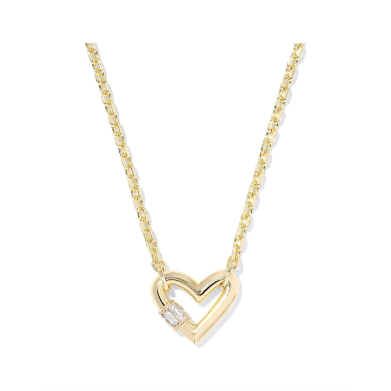 - The Kendra Scott Emery Heart Short Pendant Necklace is the chic essential your jewelry box has been waiting for. Crafted from high-quality brass and finished with a luminous touch, this dainty piece features a heart-shaped cubic zirconia stone in a wax setting that captures light beautifully with every move. Its timeless short pendant design makes it easy to layer or wear solo for an effortlessly polished look. The secure lobster clasp ensures comfort and confidence, keeping your necklace perfectly in place all day.