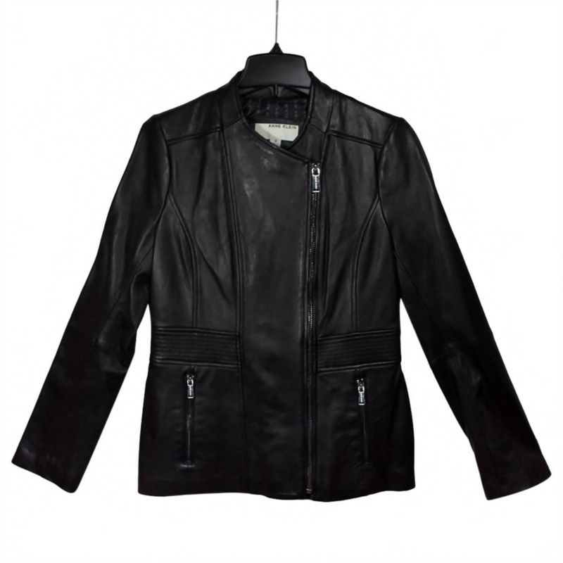 [US] ANNE KLEIN womens leather scuba jacket in black