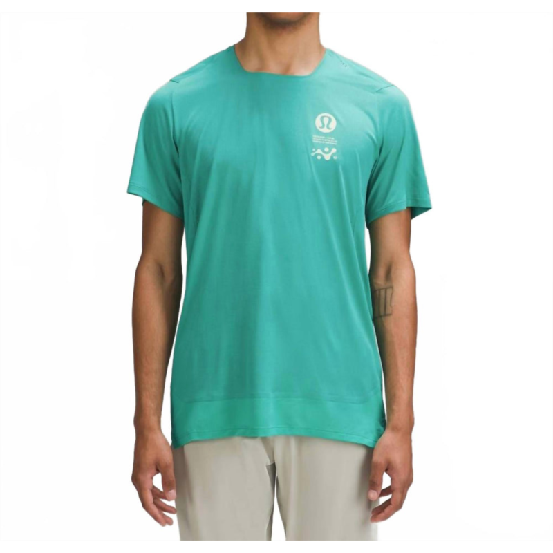 Introducing the Fast And Free Road To Trail Short Sleeve by lululemon, a perfect addition to your summer wardrobe. This blue graphic tee features a classic crewneck and short sleeves, ideal for vacation and streetwear trends. Crafted from high-quality polyester, it offers a lightweight and breathable experience. Designed for easy care, simply machine wash and tumble dry, with a convenient pull-on closure.