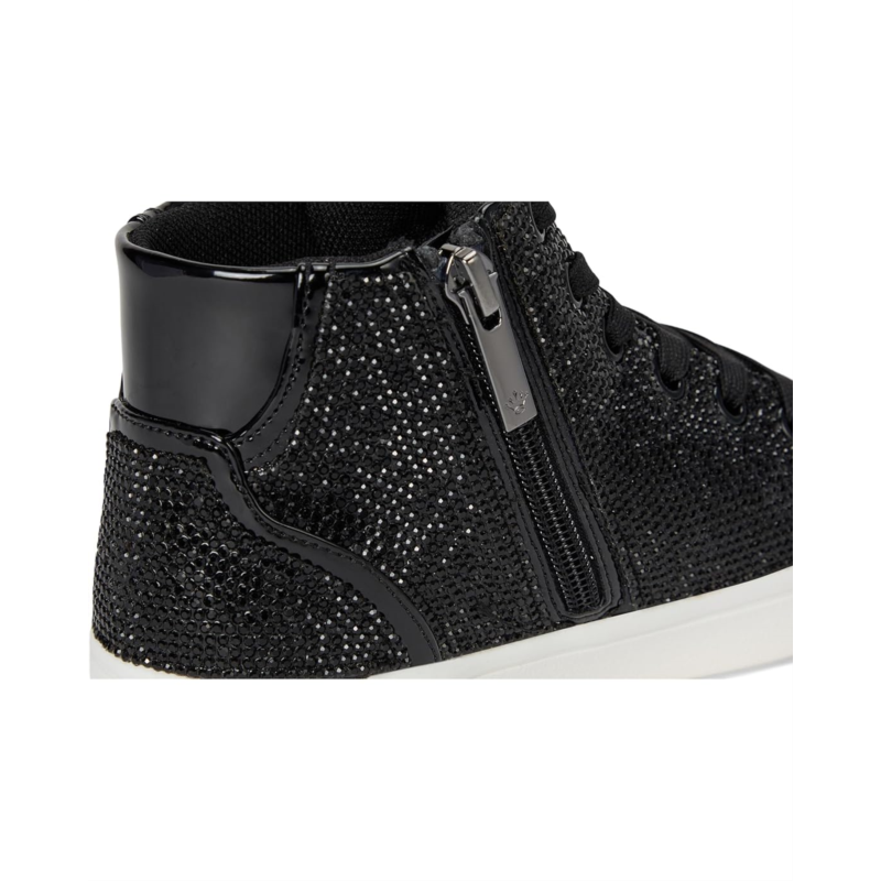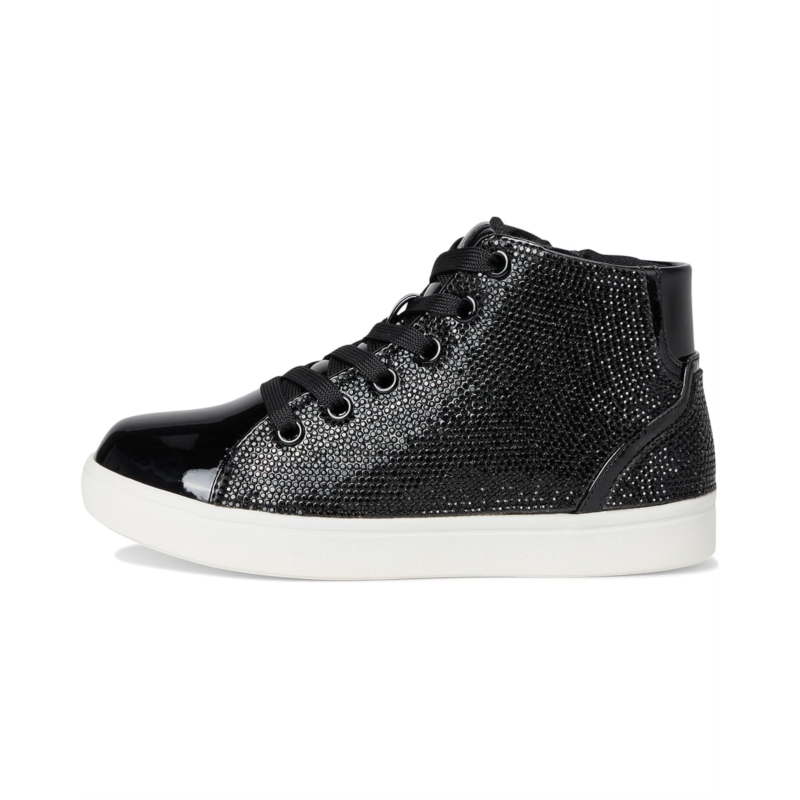 Glitzy and full of attitude, the Nina Kids Kula is a bold high-top sneaker that turns everyday outfits into standout moments. Designed with shimmering crystal accents, gleaming eyelets, and a sleek branded zipper pull, this fashion-forward style sparkles with personality. The lace-up front and inside zipper offer easy wear, while the round toe, memory foam insole, and non-slip polyurethane outsole keep her steps comfy and secure. From school days to special outings, Kula brings glam to every step.