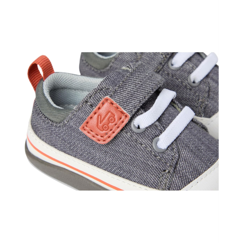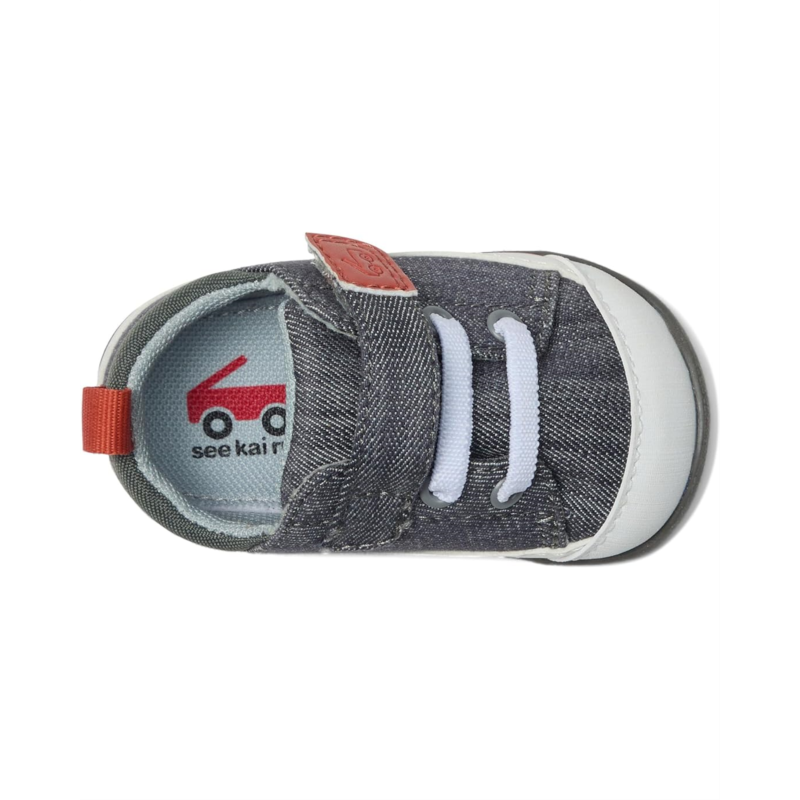 Watch his world expand step by step in the Stevie First Walker. Classic gray denim, recycled materials and a flexible rubber outsole combine to create a lightweight, comfy pair perfect for his budding adventures.