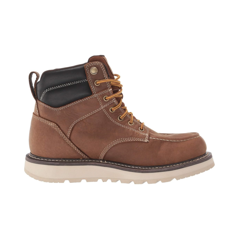 -Lace-up work wedge boot with a plain soft toe that meets ASTM F2892-17 EH (Electrical Hazard) safety standards.