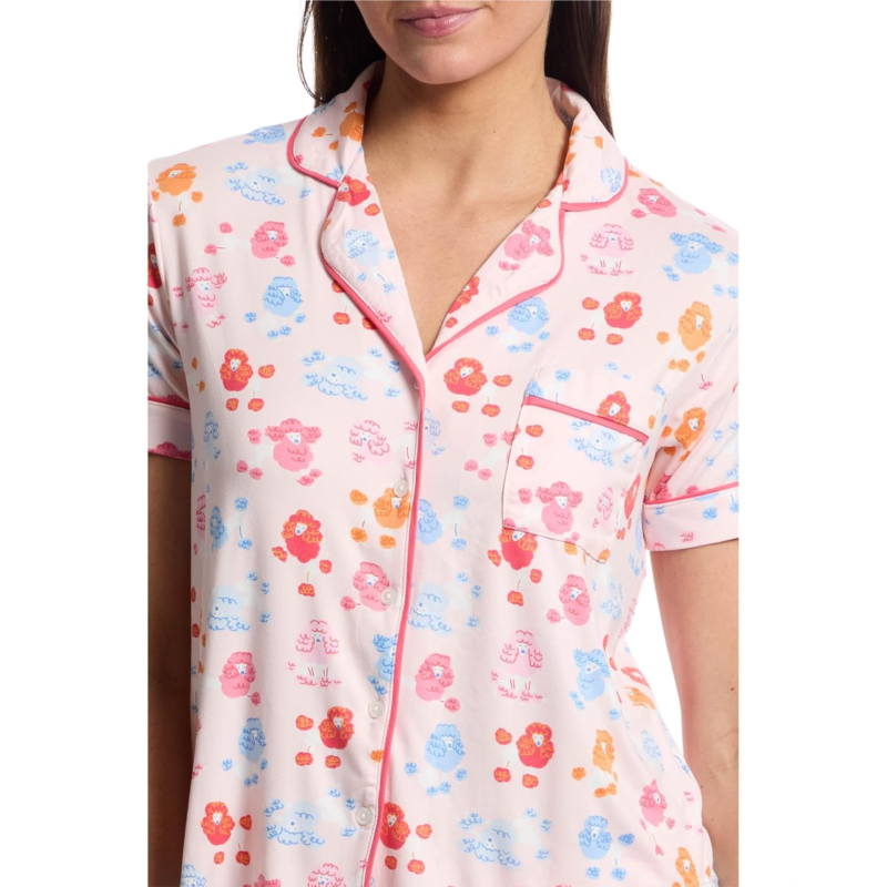- Lounge and sleep in style and comfort in the soft Kate Spade New York Short Sleeve Cropped PJ Set with a button front and piping detail.