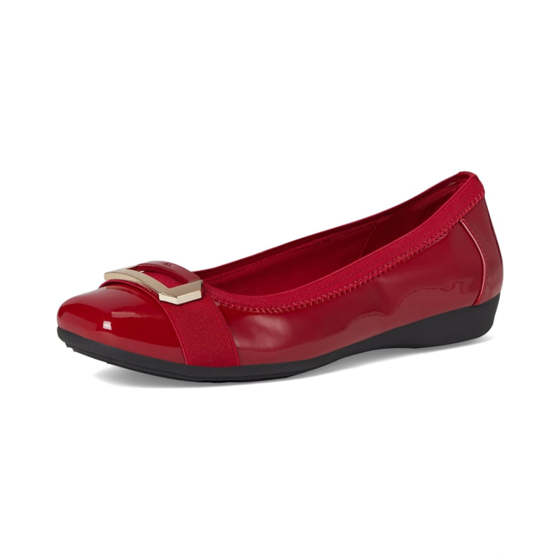 - Enhance your style game in the Anne Klein Uplift! Elevate your everyday with these chic and comfortable buckle flats. Featuring a durable rubber upper and synthetic rubber outsole, these slip-ons offer long-lasting wear. The elasticized side panels ensure a secure, cozy fit, while the fabric lining adds a touch of softness. Designed with an elastic topline, these stylish flats effortlessly blend fashion and function, making your casual look effortlessly fashionable.