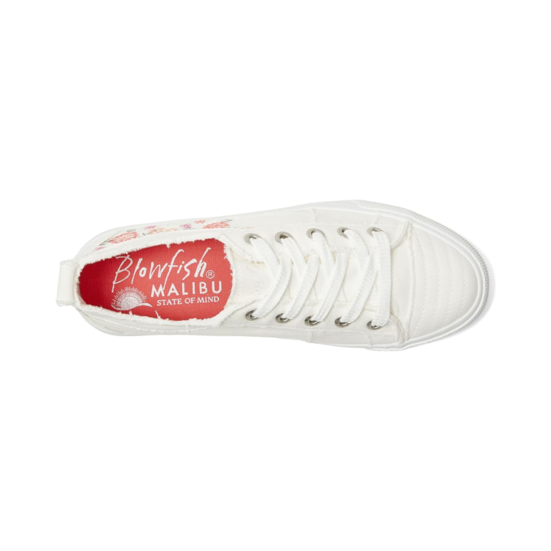 - ALL-DAY COMFORT: Enjoy every step with these comfortable Blowfish Malibu Very Sadie Lace-up Shoes featuring cushioned insoles and a lightweight design, perfect for daily wear and busy routines. The low-top silhouette, floral embroidery, and frayed detailing around the collar deliver a fresh, playful look that stands out. Durable canvas lace-up sneakers with a classic round toe design offer easy styling with casual outfits. Womens casual sneakers with a rubber sole add subtle height and sporty appeal while maintaining excellent traction. Convenient lace-up closure and small heel pull tab make these womens sneakers simple to slip on for on-the-go lifestyles.