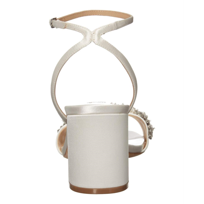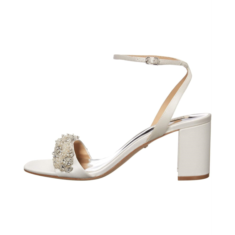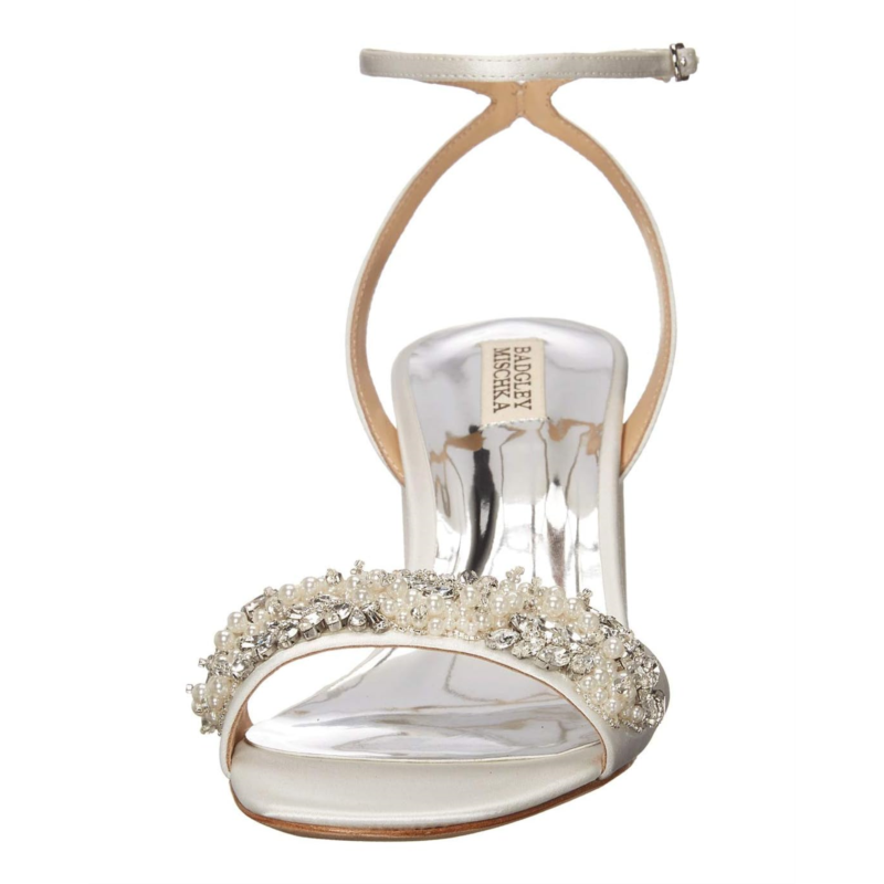 - The Jewel Badgley Mischka Clara is an essential addition to your formal attire. This dress sandal is crafted with a synthetic upper and set on a sturdy block heel, and features crystal and pearl embellishments along the toe strap.
