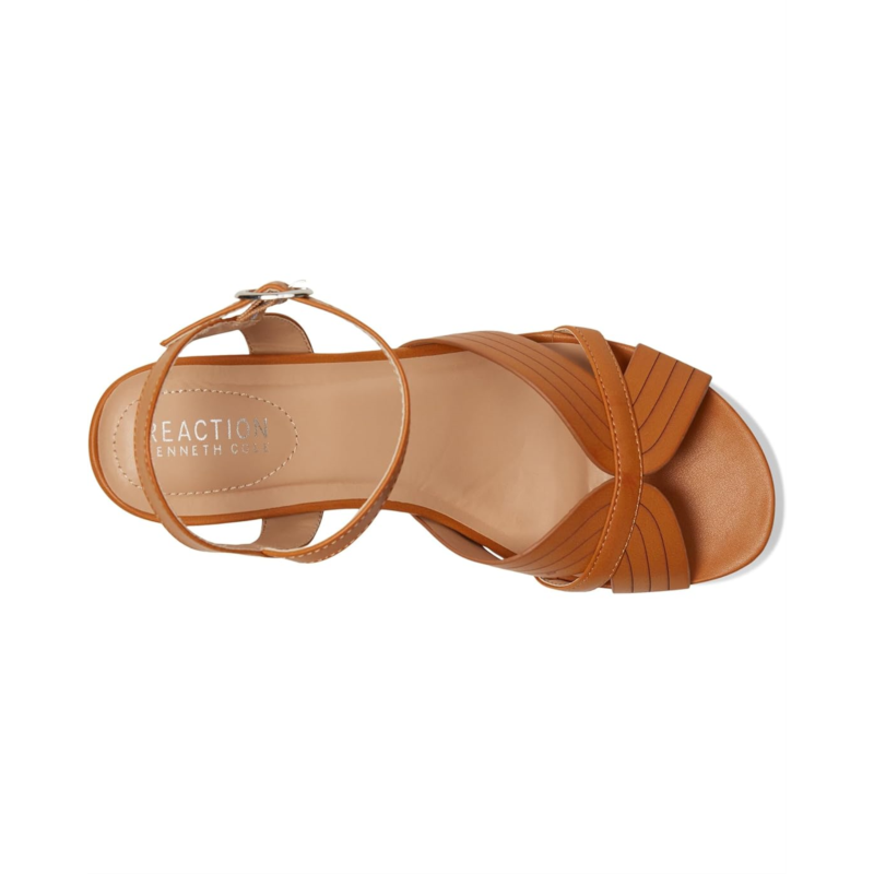 - Amp up both style and comfort wearing Kenneth Cole Reaction Comi Sandals. The comfortable wedge-heeled sandals are crafted with a strappy faux leather upper, faux leather lining, and a comfortable faux leather insole. The ankle strap and buckle closure ensure a custom fit.